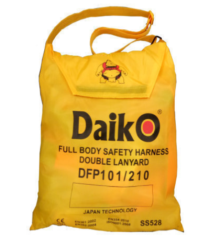 A complete set of full safety harness of; DFP101 + DFP211 DFP101 full safety harness DFP211 energy absorber rope with double hook (DFP401) DFP301 quarter turn karabiner SS528: Part 5 (SETSCO Tested)